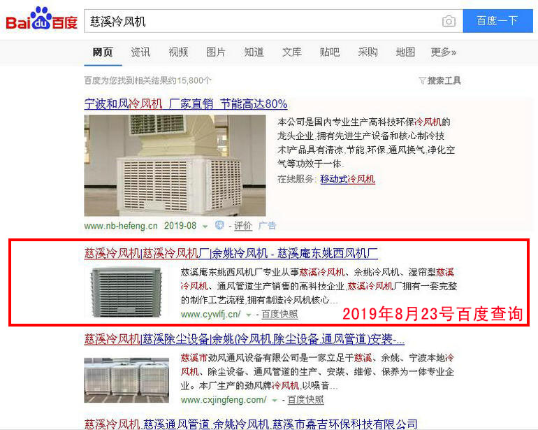 慈溪冷風(fēng)機(jī) 百度(PC)自然排名第1名