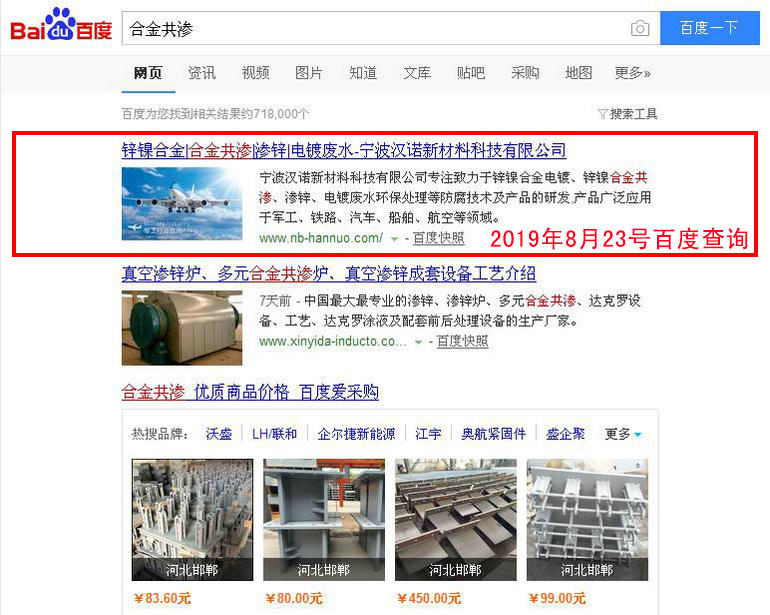 合金共滲 百度(PC)自然排名第1名,360搜索、搜狗、手機(jī)搜索等均也有比較好的排名...