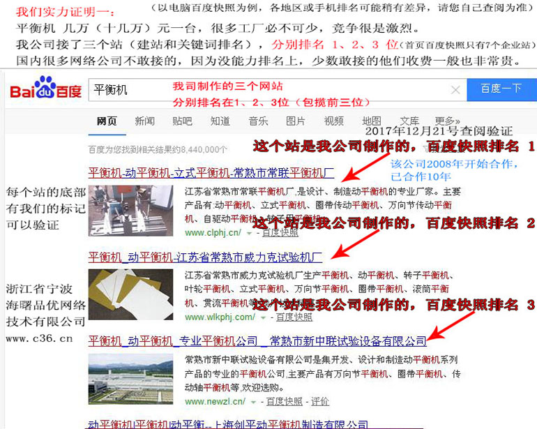 平衡機(jī) (三個(gè)字,排名比較難) 我公司接了三個(gè)站(建站和關(guān)鍵詞排名),百度快照分別排名1、2 、3名 (360搜索等其它搜索引擎也排名挺好)...